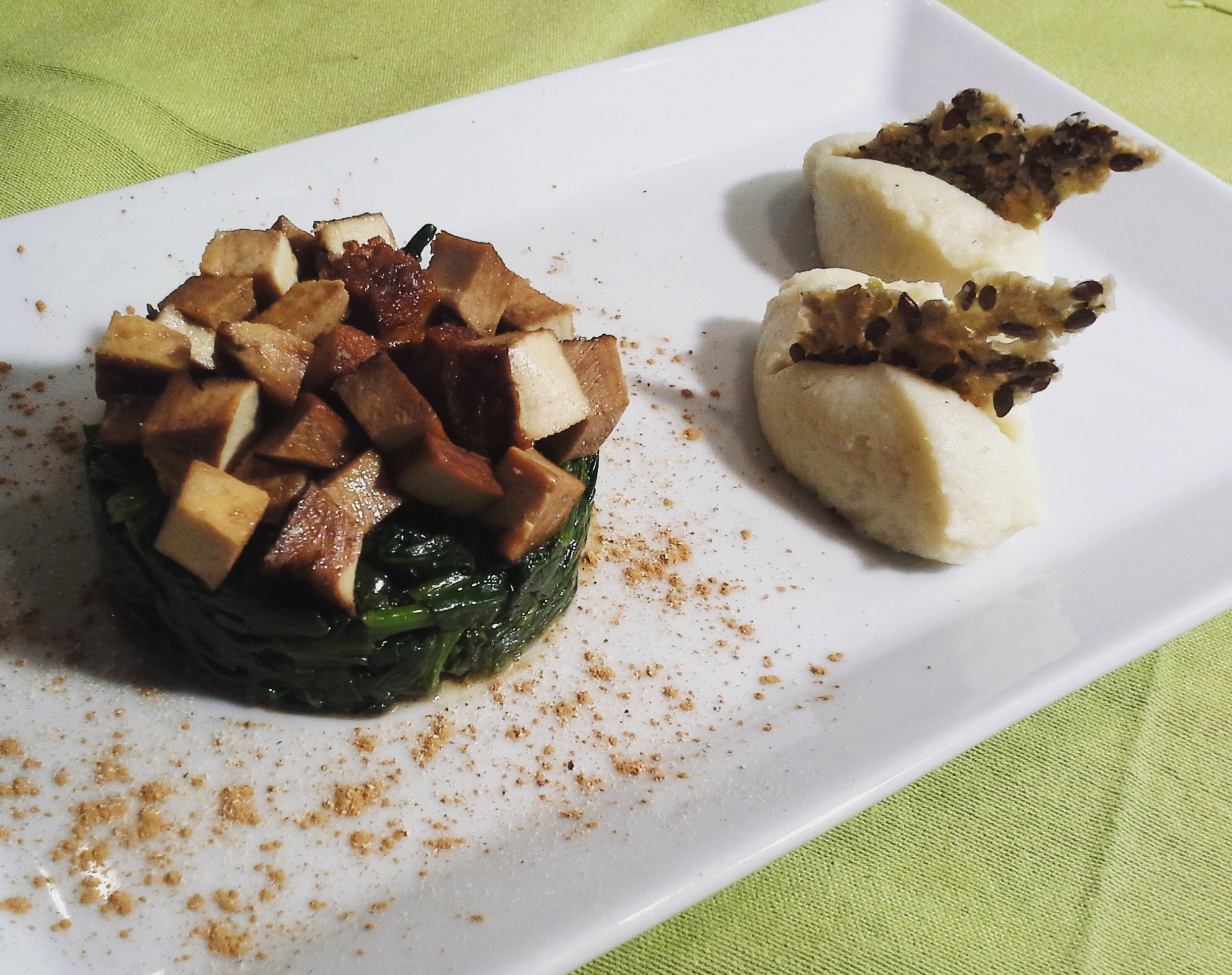 Qui servito con spinaci freschi saltati con cannella, ...